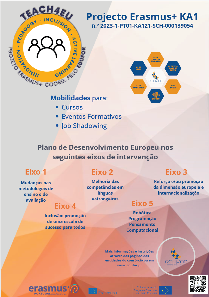 Nos sítios web das entidades participantes, poderá encontar divulgações realizadas pelos professores em mobilidade: Centro de Formação EduFor, AE de Canas de Senhorim, AE de Nelas, AE de Mangualde, AE de Penalva do Castelo, AE de Sátão e AE de Vila Nova de Paiva.